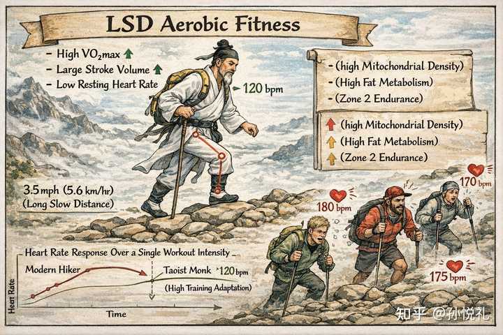 若說內功深厚,不過是對身體能量系統(tǒng)的長期馴化。多年來調息導引,使得他脂代謝能力遠勝常人。普通人行山,多以糖原為主燃料,一旦耗盡,便有“撞墻”之虞,頭昏目眩,判斷失誤。而脂代謝效率高者,能在低強度區(qū)間長時間維持穩(wěn)定輸出。