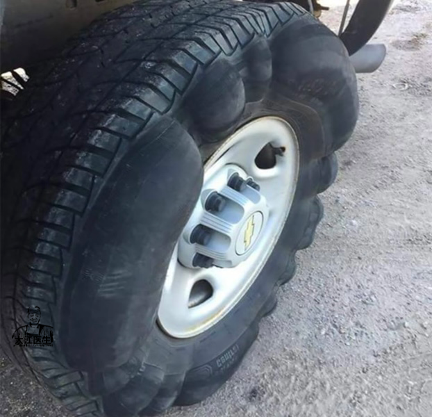 車胎都鼓包了,還渾然不覺,該干啥干啥,病情發(fā)展甚至還有可能這樣.....